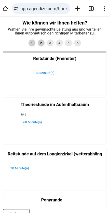 Schritt 4: Auswählen der Anzahl der Reitstunden.