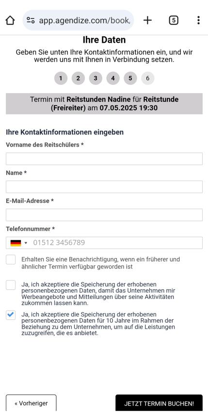 Schritt 6: Angabe der persönlichen Daten und Zustimmung zu den Datenschutzbestimmungen.